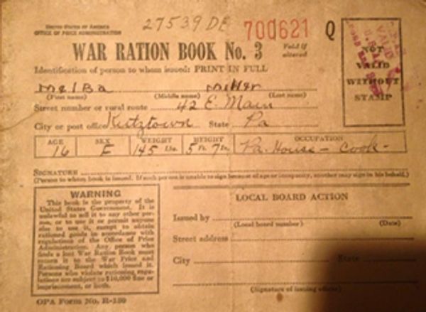 World War II ration coupon book. (Melba Miller) Notice the address.